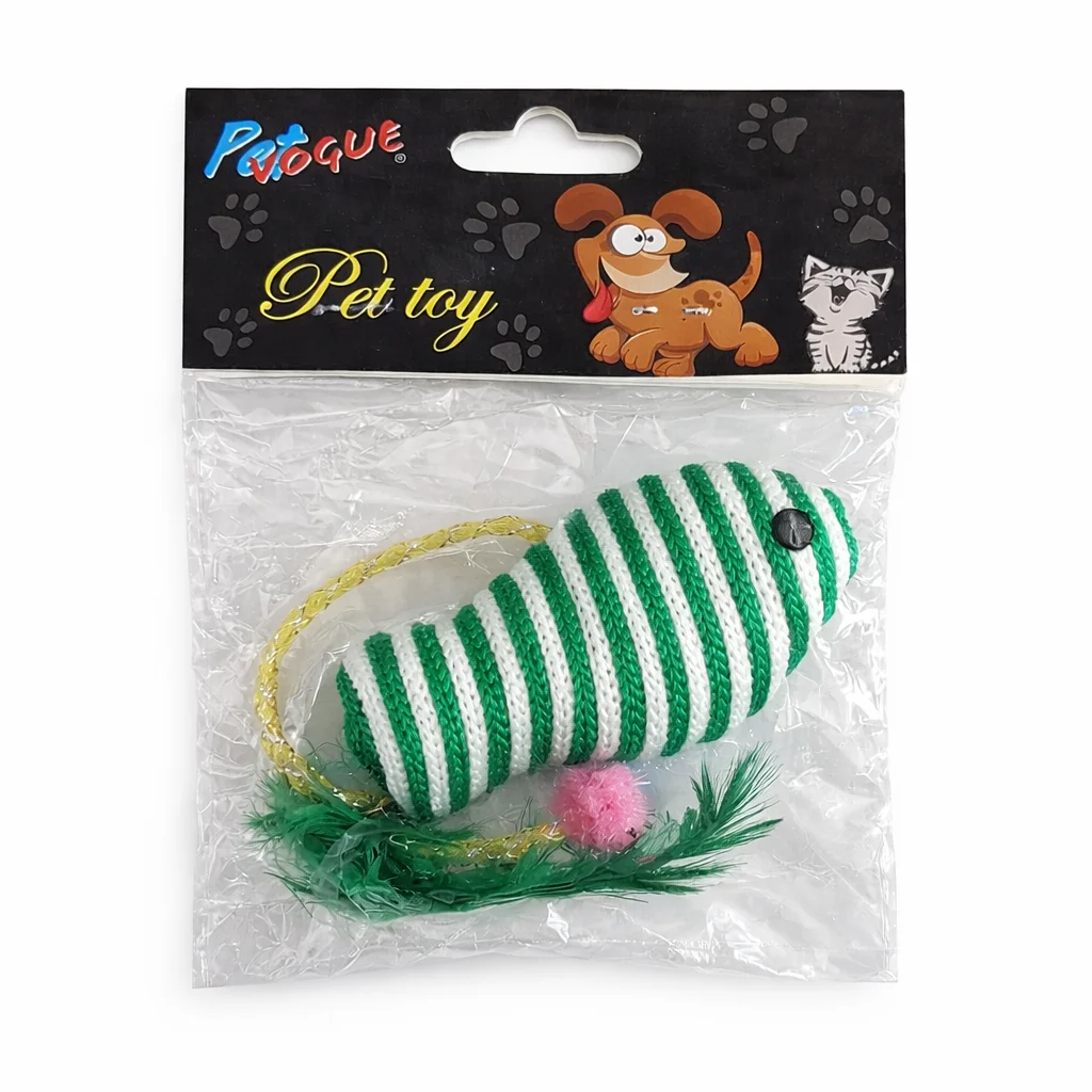 🐟 Jouet pour Chat – Poisson Rayé avec Plumes & Pompons